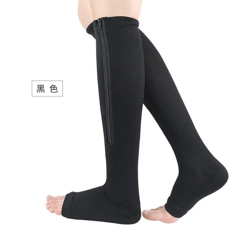 Zipper compression socks for leg pain relief, swelling reduction, and varicose veins support with breathable design.